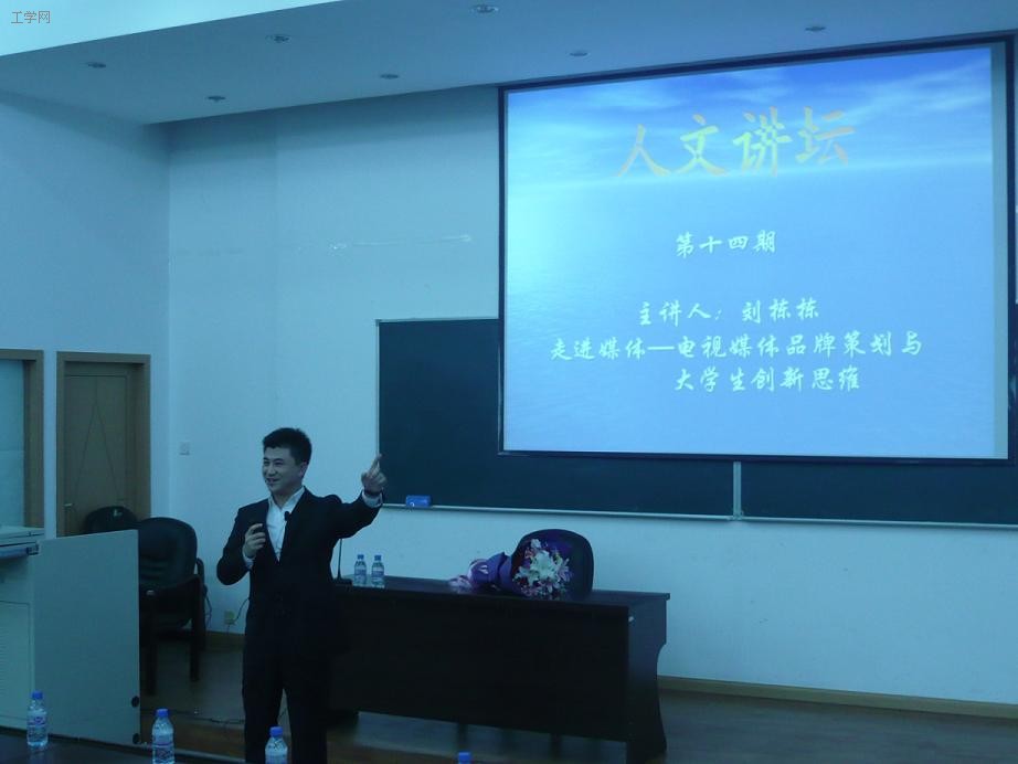 本次讲座在刘栋栋主持人简短幽默的自我介绍中拉开了帷幕。刘老师从大众熟悉的“收视率”等问题入手,以成功人士的角度给同学们的发展创新提出了一些建设性的意见。他将电视媒体品牌策划与大学生创新思维的培养相联系,从自身经历出发,提出了大学生创新思维中不可或缺的要素:亲和力、决断力、忍耐力以及面对尝试的勇气和面对失败的坚持,给在场的大一新生以深刻启迪。