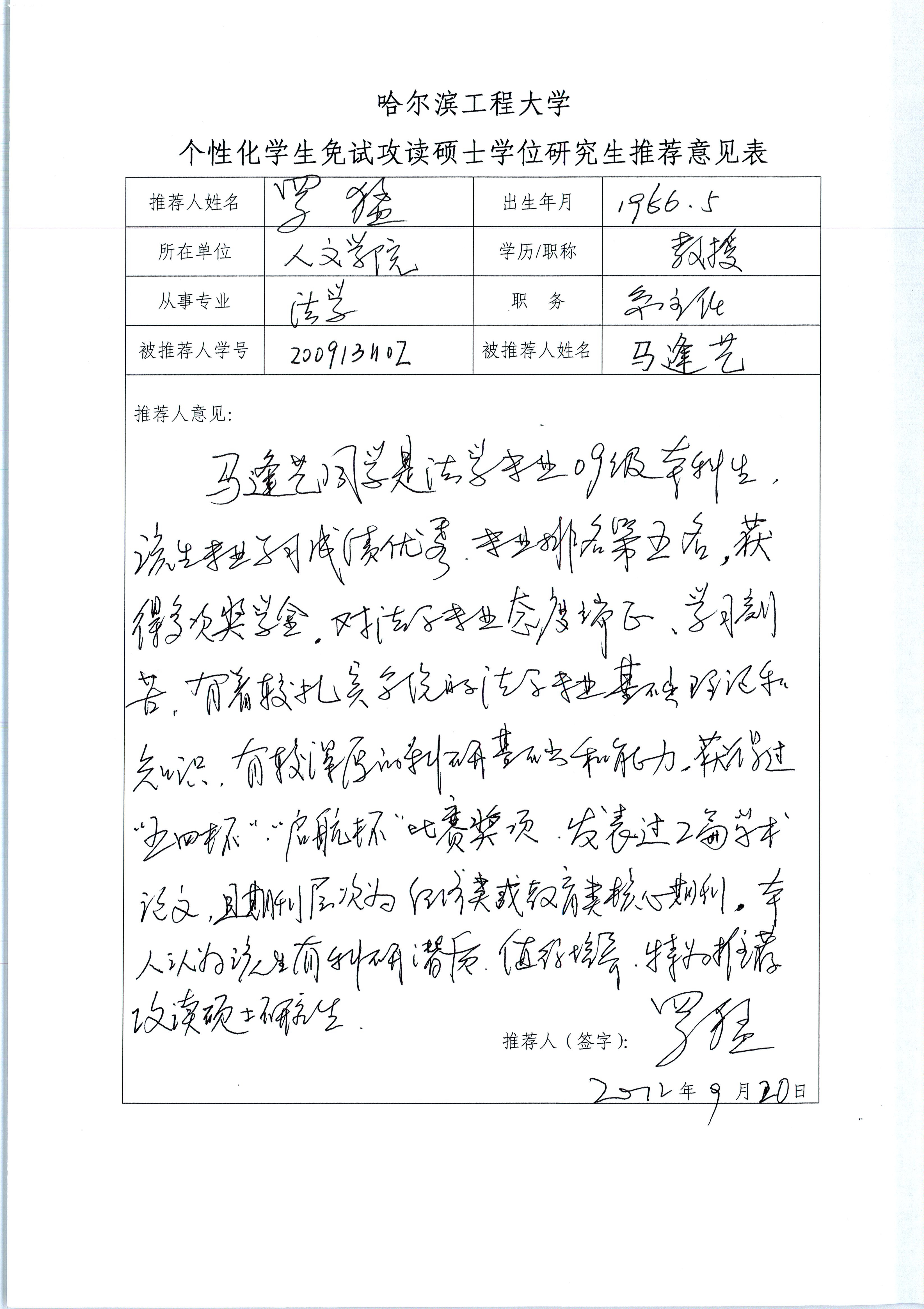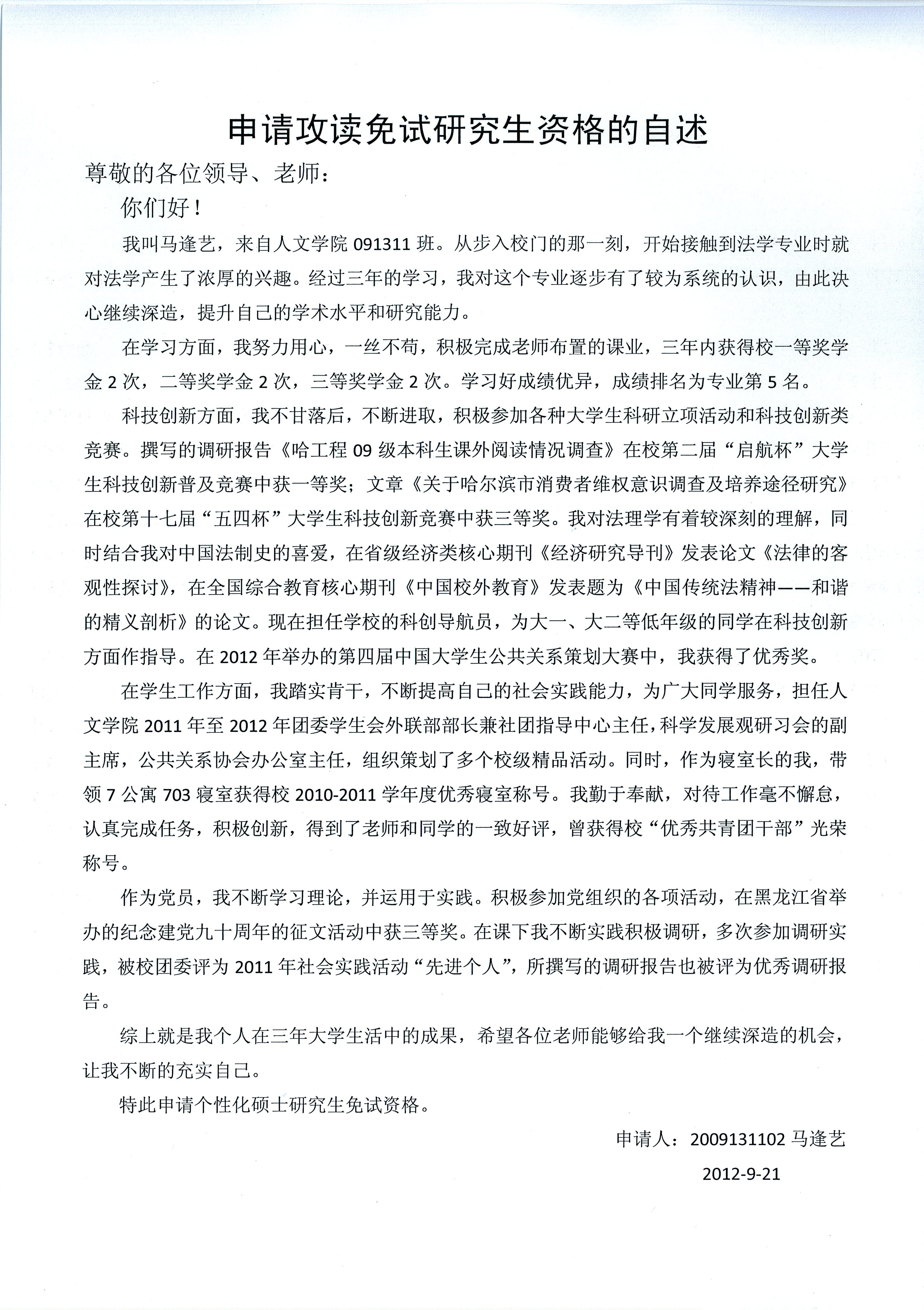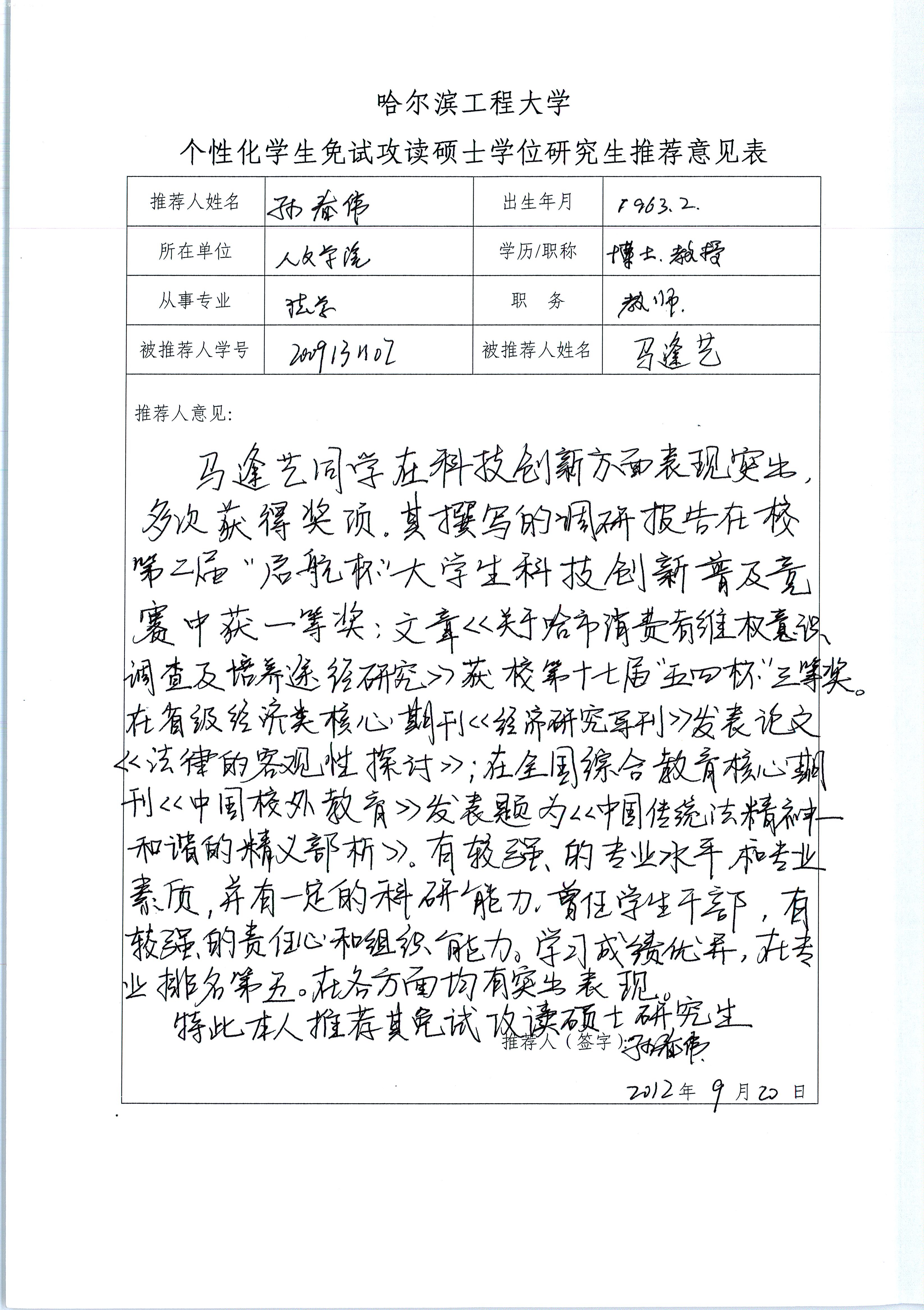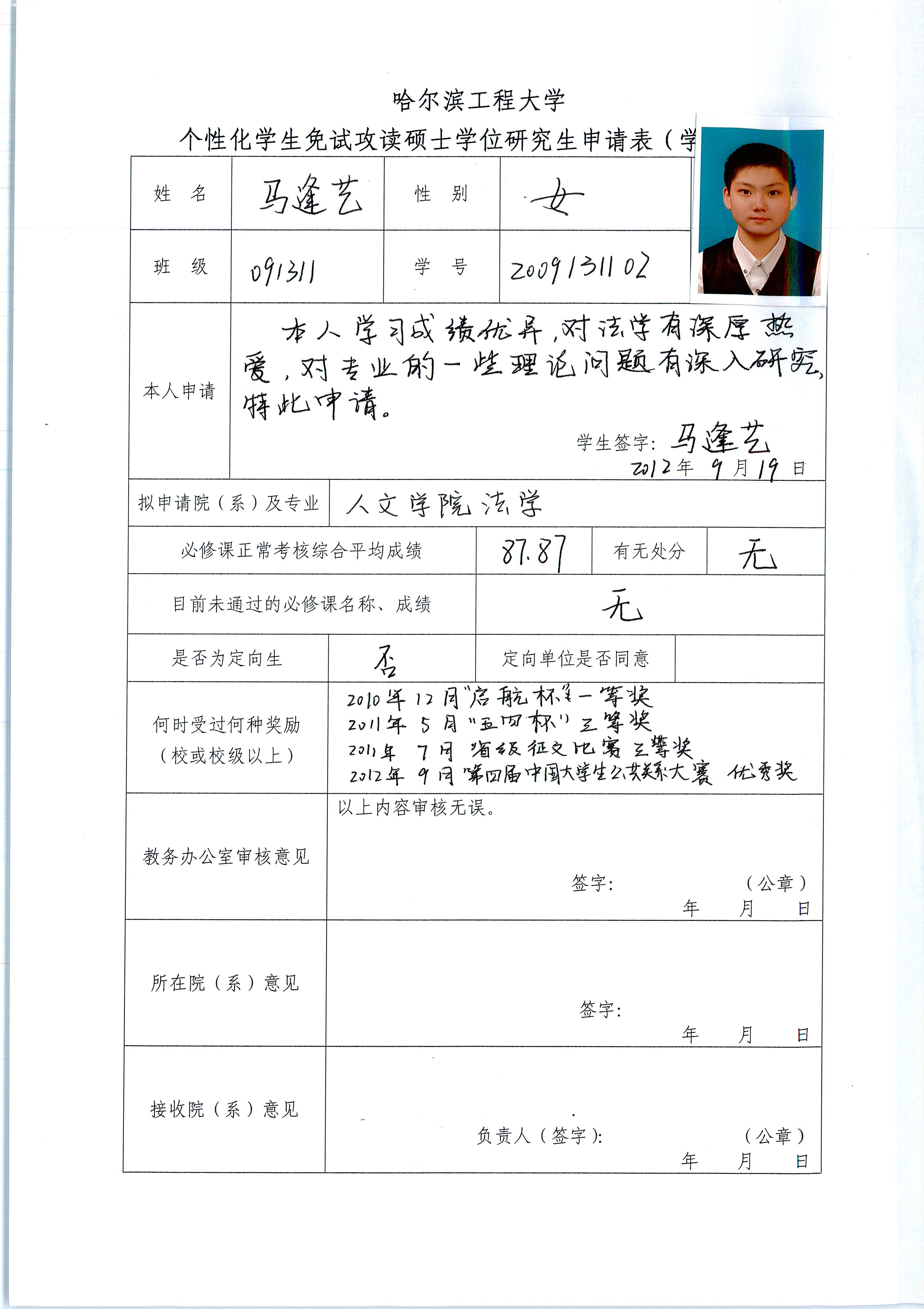 YABO鸭脖官网推免评审小组于2012年9月25日召开全体会议,推免评审小组共7人,出席7人。经与会成员的充分讨论,同意推荐马逢艺同学参加个性化推免评审,现将其材料予以公示,如有意见请于9月29日前向学院推免工作领导小组反映。电话:82569513。