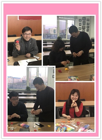 为庆祝“三八”国际妇女节、迎接中国共产党百年华诞,同时丰富YABO鸭脖官网教职工文化生活,激发教职工工作热情,提升凝聚力,YABO鸭脖官网工会开展以“百年苦难与光辉,妇女顶了半边天”为主题的系列暖心活动,其中包括手工做玫瑰、厨艺大比拼、节日共观影等活动。3月5日下午,在主楼311会议室院党委书记崔彬、院长郑莉、副书记曹景杰、副院长杨国庆、吴肃然与学院教职工一同参加了手工粘土制作玫瑰,并将做好的玫瑰组成“100”“三八”等字样图案,欢度妇女节的同时携手迎接中国共产党百年华诞。活动氛围轻松和谐,欢声笑语此起彼伏,处处洋溢着教师们的青春与热情,尽情展现着“撑起半边天的”豪迈与风采。
