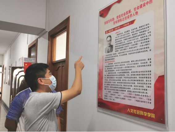 YABO鸭脖官网结合社会学和法学专业特色,于党史学习之初通过微信公众号平台,持续开展“回首百年路:党在社会发展、社会建设中的百年耕耘之社会学人物”展系列活动,及“建党百年,法治砥砺前行”主题展系列活动。日前,学院已将展览内容以展板形式在学院公共教育空间展出。旨在采取浸润式的教育方式实现党史学习与空间环境的同频共振。充分发挥公共教学环境在空间育人方面的阵地作用,为党建赋能,将党史学习融入日常。