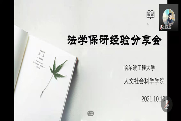 首先,保送至重庆大学的田朝宇同学主要从保研流程进行分享,他以问题为导向展开,对个人夏令营九月推免、未来局势分析进行了详细的讲解。随后,保送至中国政法大学的司银铃同学从学习复习方法、面试准备、投递策略等多方面展开,对同学们日后的面试时间安排也提供了宝贵的建议。然后,保送至中南财经政法大学的李隽姝同学对保研加分政策进行解读,使同学们更加了解保研的类别,也更加明确加分的各种项目和规则。第四位主讲人、同样保送至中南财经政法大学的曹伊童同学进行了详细的保研边缘人策略分析,向同学们推荐了相关的参考书籍和学习网站,并鼓励同学们勇于尝试,调整好心态,学会取舍。