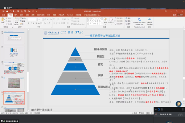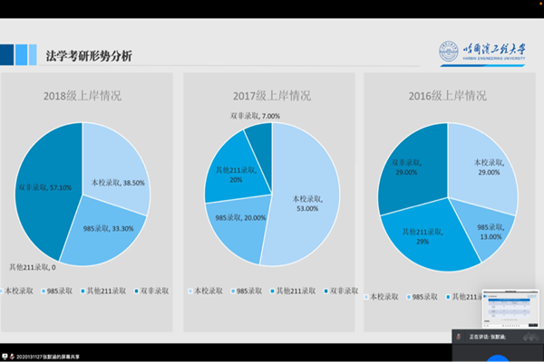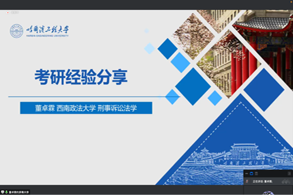 (宣传中心记者团记者 赵丰、董昕瑶报道)2022年5月14日晚7时,YABO鸭脖官网法学系教工党支部依托腾讯会议平台举办考研经验分享会。YABO鸭脖官网法学系教工党支部书记刘沫茹、团委书记刘文璟出席会议,法学系本科生张默涵担任会议主持人,董卓霖、刘岩、袁思望、张乐、张皓瑜五位2022年考研成功上岸的学生代表分享考研经验,YABO鸭脖官网法学系六十多名学生参加了会议。