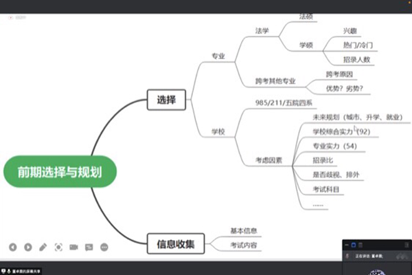 张皓瑜:要弄清楚法硕和学硕的区别,“刑事诉讼专业”“国际法”等学硕方向更偏向于科研,法律硕士更偏向于法律的实际运用,在二者之间选择时,自己的兴趣是非常重要的权衡因素。