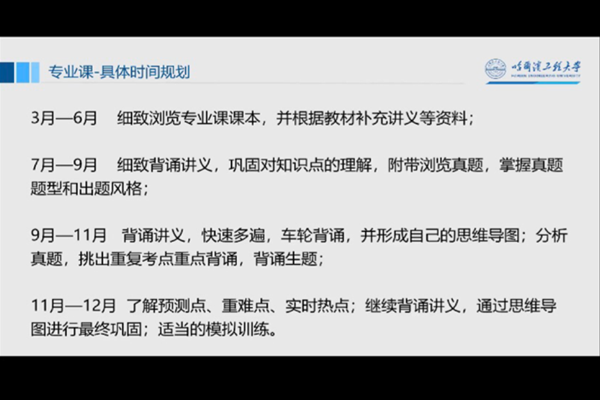 11月-12月了解预测点、重难点、实时热点;继续背通讲义,通过思维导图进行最终巩固;进行适当的模拟训练。