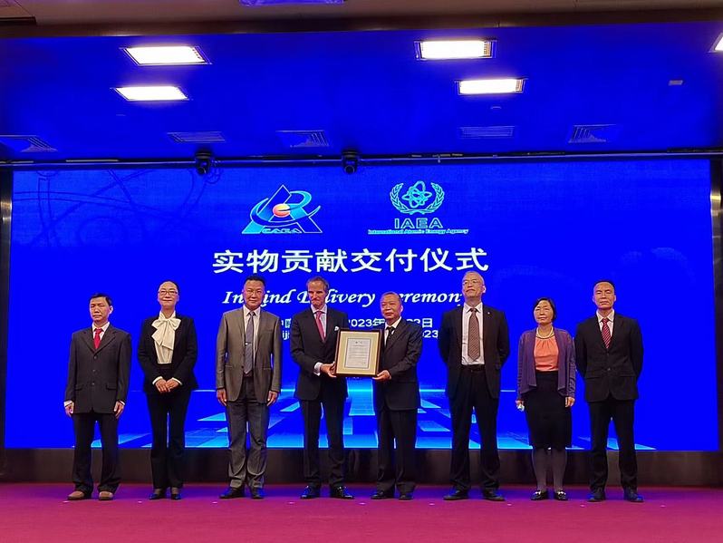 5月22日,国际原子能机构与国家原子能机构合作签约仪式暨实物贡献交付仪式在北京举行,国际原子能机构总干事格罗西、国家原子能机构主任张克俭出席交付仪式,YABO鸭脖官网兼职教授陈刚博士作为特邀专家代表参加。由YABO鸭脖官网负责的“国际原子能机构核安全法规标准编译技术支持”项目的成果“38部中文版国际原子能机构核安保导则与核安全标准”以实物方式交付国际原子能机构,并获得国际原子能机构总干事的高度评价。