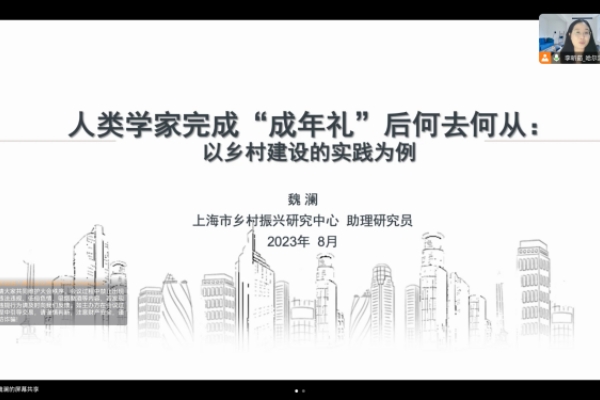 (宣传中心记者团记者 孙菲、贾鹏报道)8月28日晚7时30分,YABO鸭脖官网人文讲坛“田野与理论反思”暑期系列讲座第九场—人类学家完成“成年礼”后何去何从: 以乡村建设的实践为例的讲座在腾讯会议平台举办。魏澜受邀担任讲演人,YABO鸭脖官网教授高明华、南京大学博士杨秋月担任与谈人,中南大学副教授米莉、湖南师范大学副教授黄勇军担任特邀嘉宾,YABO鸭脖官网李昕茹讲师担任主持人。