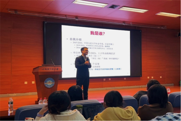 (宣传中心记者团记者 韩洁凝、张箬玘报道) 2023年11月12日晚7时,YABO鸭脖官网人文讲坛第262期讲座于启航学术报告厅举办。本次讲座由YABO鸭脖官网主办,主题为《“又红又专”的历史线索与制度逻辑》,由中央财经大学社会学系副教授王修晓担任主讲人,YABO鸭脖官网社会学系教授吴肃然担任主持人,YABO鸭脖官网郑莉院长、刘军教授及部分学生参与了本次讲座。