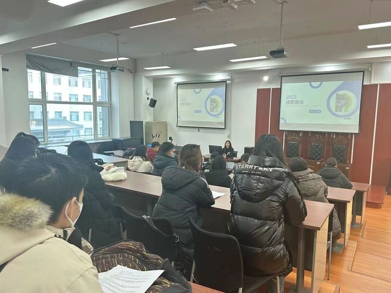 而后,由文体部、新媒体部、生活部、学习部、综合事务部、科创部六个部门依次进行述职汇报,各个部门都围绕着本学期的活动不同分工展开汇报,从不同方面总结存在的问题,同时对下学期的工作进行规划和展望。