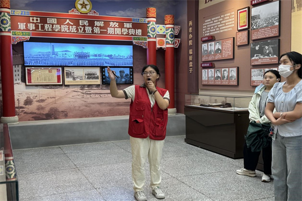 军工纪念馆陈列着我校自建国以来在国防科技领域取得的伟大成果,上午10时,在讲解员的引导下,2024级社会学、社会工作、社会发展与管理专业新生率先进入军工纪念馆进行参观。同学们首先来到了强基固本展厅,这里展示了陈庚院长组建我校前身中国人民解放军军事工程学院的具体过程。接下来,同学们来到武器模型展厅,整个展厅珍藏了大量手稿、书籍、生活用品和武器模型,无不体现出我校先辈们勤劳朴实的人文素养和刻苦钻研的科研精神。