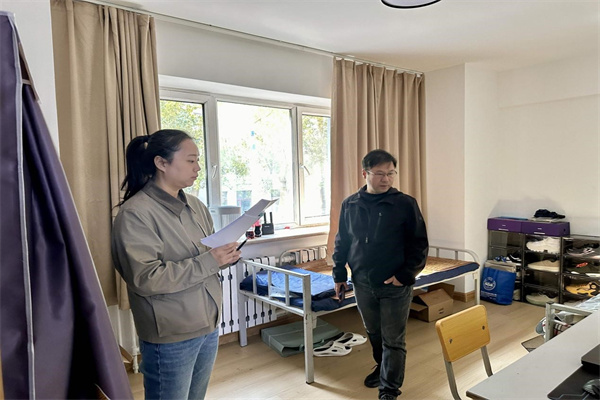 在检查过程中,老师们深入YABO鸭脖官网研究生宿舍,重点检查寝室内电器使用情况、日常安全、室内环境卫生、住宿学生信息等内容,按照寝室内安全卫生检查表认真逐条检查,对检查中发现的隐患和问题进行提醒和整改。