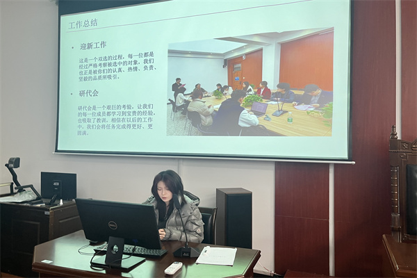 随后,新媒体部、综合事务部、学习部、文体部、生活权益部部长依次对本年度部门工作进行了回顾总结。各部门本年度内均在工作内容上进行了创新探索,新加入的成员也在这一过程中得到了历练。会议上,部长们分别对本部门工作内容,改进方向与未来规划进行阐述,为研究生会后续工作的扎实推进奠定了坚实基础。