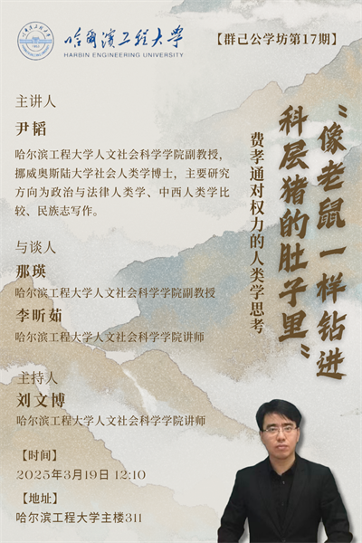 本讲座聚焦于费孝通如何从关于无政府、无文字部落的政治人类学研究中汲取营养,从而对有政府和有文字的传统中国之权力结构进行整体分析。在“志在富民”和“文化自觉”之外,费孝通的“权力制衡”研究有着同等重要的意义。