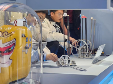 在智能科学与工程学院机器人工程实验室,马英凯博士向同学们展示了实验室自主研发的服务机器人与实验室学生自主编程的机器狗,引来同学们阵阵惊叹。在与机器人设备的互动中,同学们不仅感受到科技魅力,也对未来具身智能领域的发展方向有了更直观的认识。