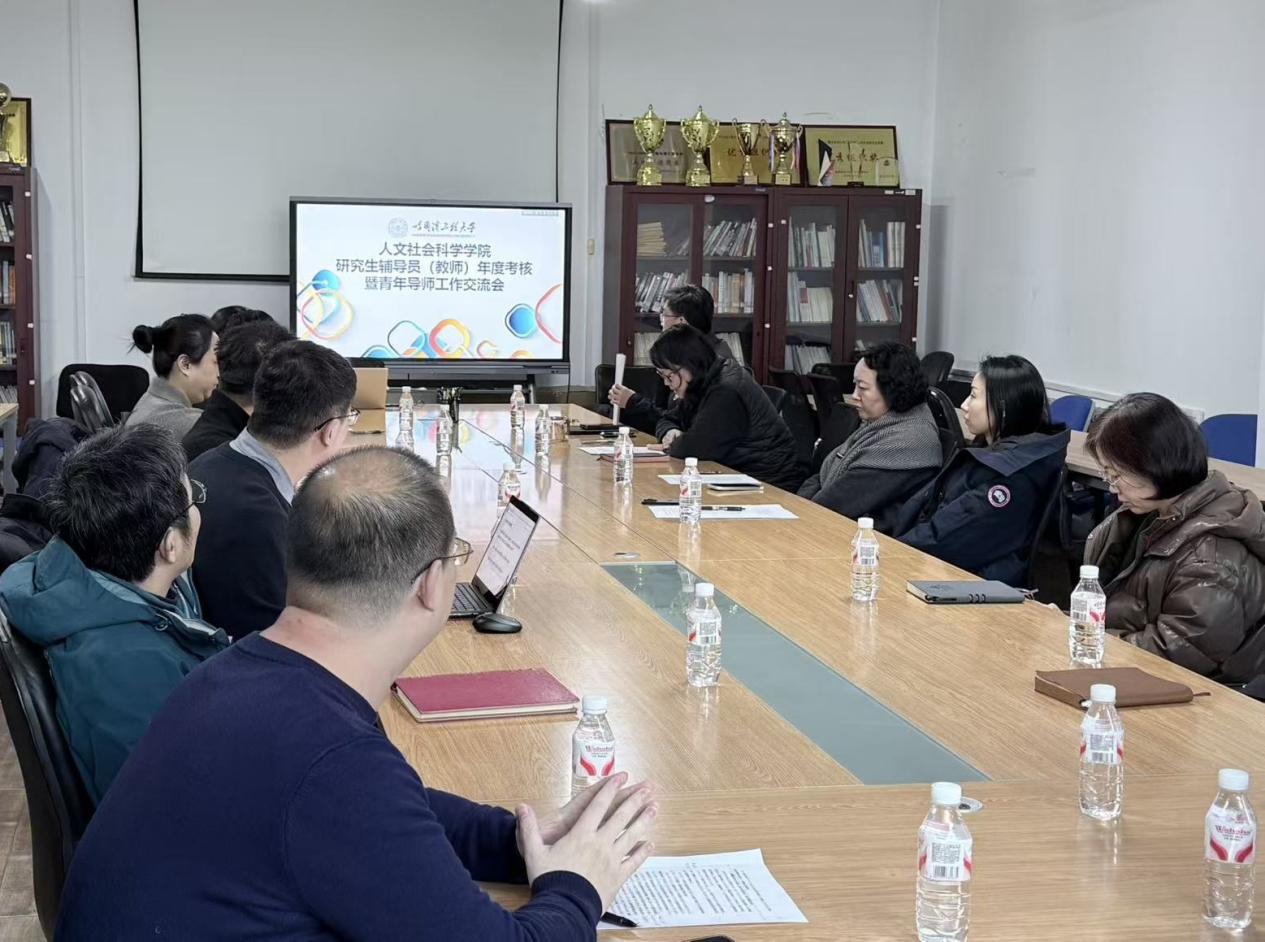 2025年12月15日下午2时30分,YABO鸭脖官网2025年度研究生辅导员(教师)考核暨青年导师工作交流会在主楼302教室召开。学院党委书记崔彬,党委副书记吴际,法学系基层学术组织负责人袁雪,社会学系基层学术组织负责人黄振羽,教务办公室主任陈玉清,学生工作办公室主任李瑶出席会议,校党委研究生工作部李优仁列席会议,全体研究生辅导员(教师)参加会议,学院党委副书记吴际主持会议。